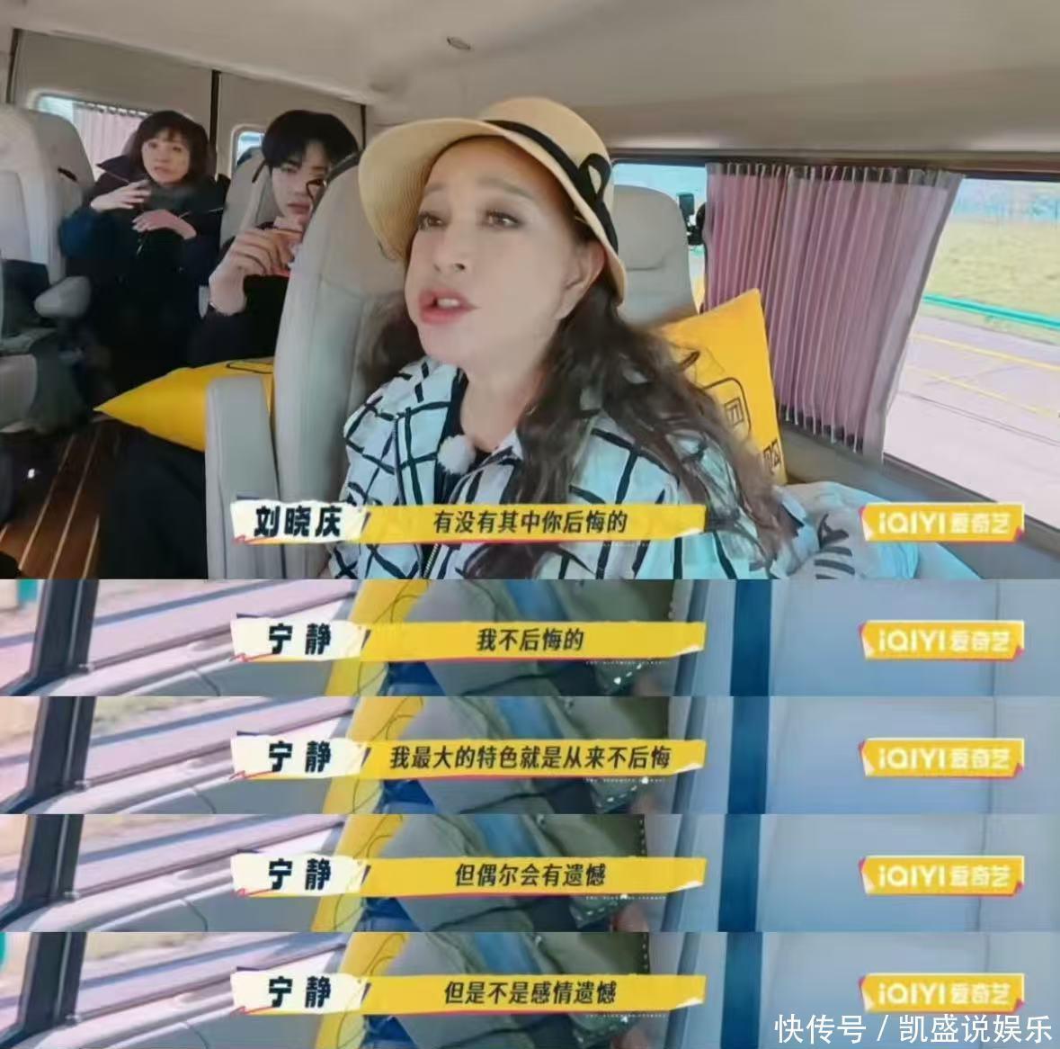 回到节目中,刘晓庆问宁静是否后悔时,宁静也说到“从不后悔,但是偶尔有过遗憾,不过遗憾的不是感情本身,后悔最糟糕”。